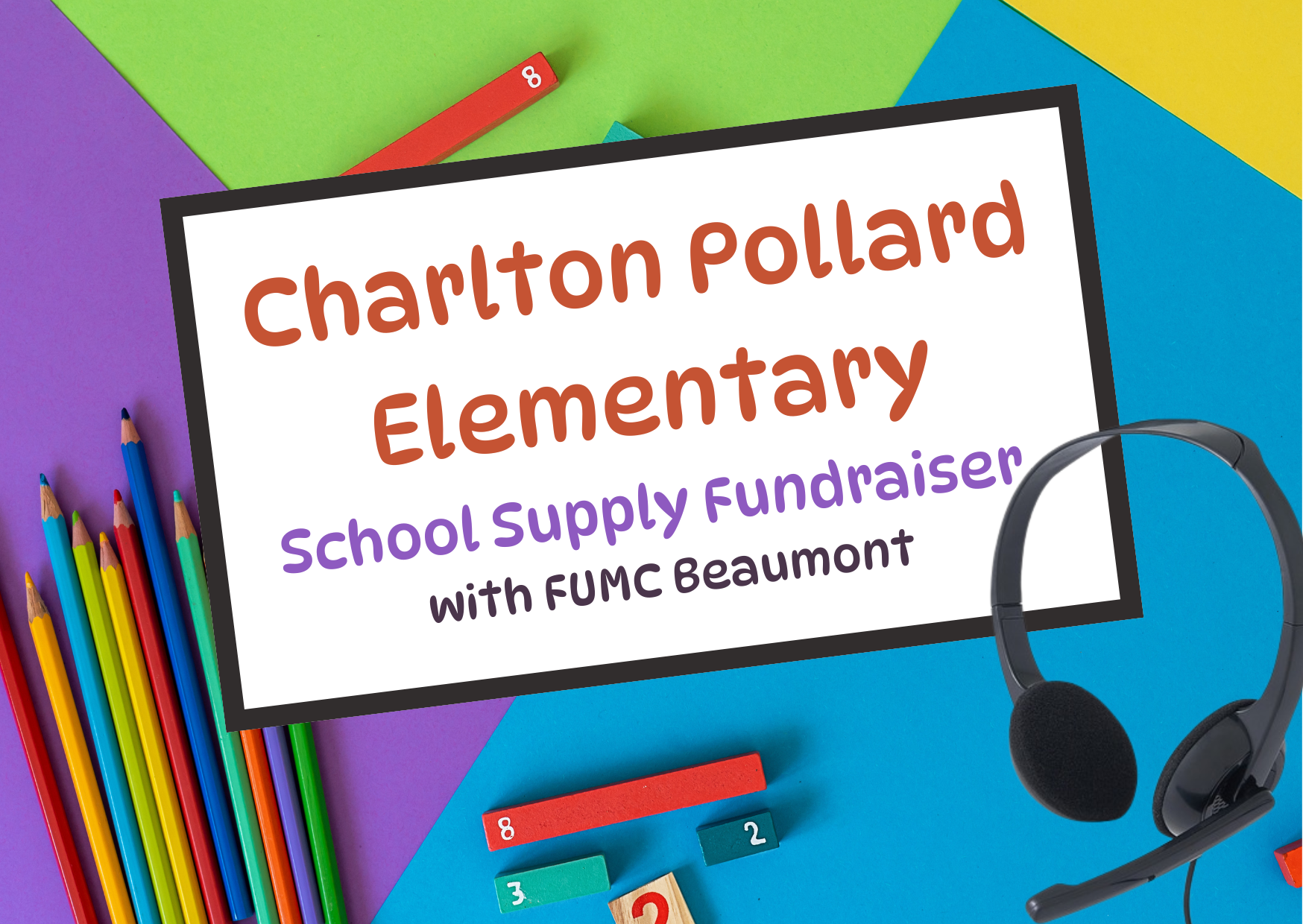 Make donations payable to FUMC, Designated to: Charlton Pollard School Supplies